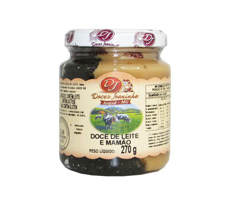 Ingredientes: doce de leite: leite, açúcar, e bicarbonato de sódio. Doce de mamão ralado: mamão e açúcar. Tendo validade de um ano após a data de fabricação.